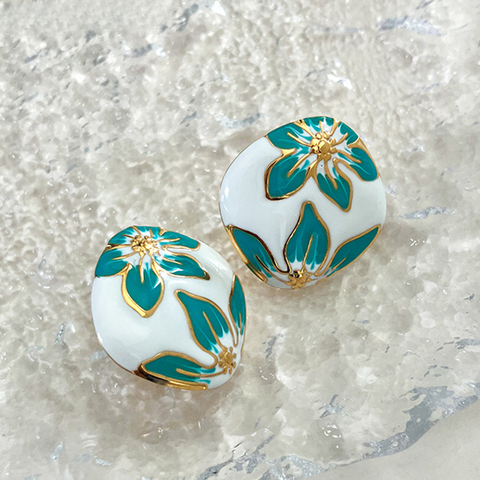 ต่างหูทรงสี่เหลี่ยมรูปทรงเรขาคณิตสำหรับอุตสาหกรรมหนักเคลือบลายดอกไม้สแตนเลสแบบวินเทจ