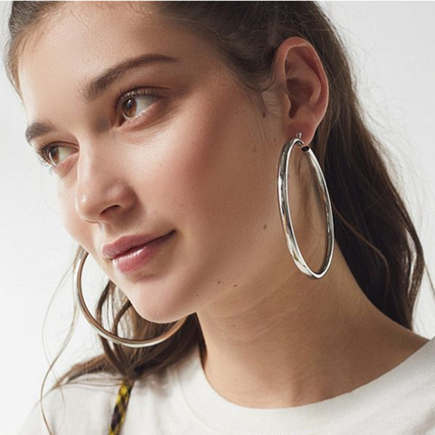 Gold Silver Color Stainless Steel Threads Geometric Minimalist Style Women Ladies Large Hoops Earrings