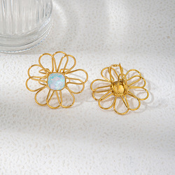 Stainless Steel Opening Ring Hand-Wound Hollow Three-Dimensional Flower Popular Super Fairy Sweet Girl Moonstone Tempered