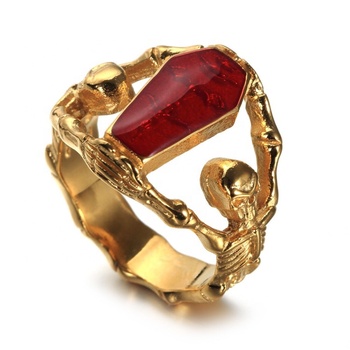 Emas Retro Punk Tengkorak Mumi Cincin Permata Merah Cast Stainless Steel Desain Perhiasan