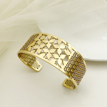 Overdreven Manchet Armband Rvs Holle Opening Ontwerp High-End Kwaliteit 14K Goud Dames Fruit Patroon Catwalk