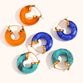 Hot Bán Đơn Giản Bông Tai Đồ Trang Sức Thép Không Gỉ Mạ 18K Vàng Acrylic Vòng Ống Bông Tai Phụ Nữ