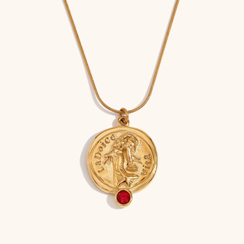 Hot Bán Red Kim Cương Đồng Xu Mặt Dây Chuyền Vòng Cổ Thép Không Gỉ Mạ 18K Vàng Thời Trang Ánh Sáng Sang Trọng Áo Len Chuỗi Phụ Nữ