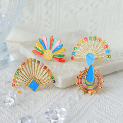 Peacock mở màn hình ánh sáng sang trọng thép không gỉ mạ vàng Vòng màu dầu nhỏ giọt hoa thiết kế ban đầu mở vòng